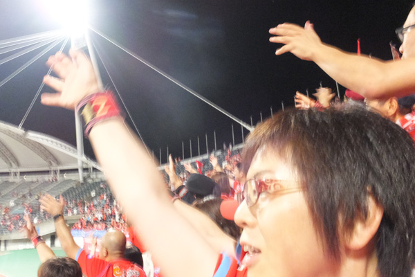 試合中の応援は全力で。ときどき目に付くピッチ周辺にカメラ向けて見もせずシャッターを押すというのが最近の撮り方。なのでブレブレは日常茶飯事♪