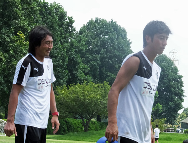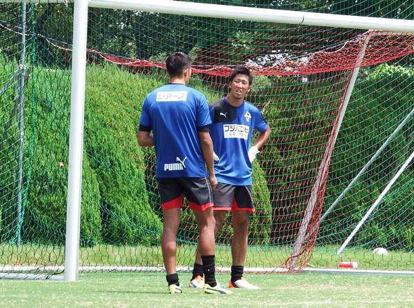 進撃のGK二人で立ち話。こうして見ると身長気にならないけど、よく見るとゴールマウスのバーがえらい低く見えます(^^)