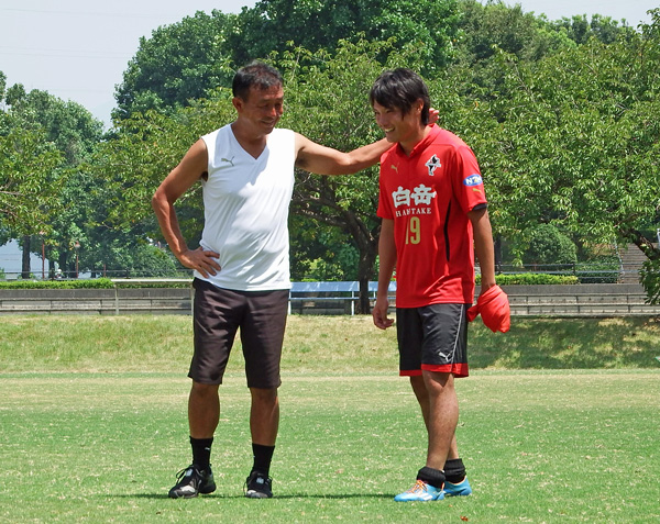 スピードスター(誰がそんな古くさい二つ名言い出したんだっぺ(・_・)?)とキタジコーチ。炎天下でずーっとお話し。