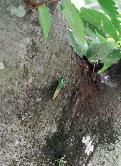 見学中に玉虫くんと遭遇!(発見したのはTさんですが(^^;))なんとまあ何年ぶりに見ただろう。まだ熊本市内にもいたんだね。選手の皆さん、駐車場の樹木にお住まいですよ!