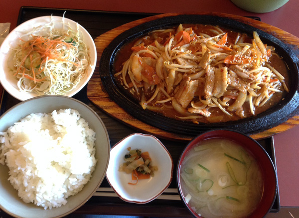 遅くなったけどお腹ペコペコなので最後まで残った皆さんと、スタジアム近くのご飯屋さんへ。テンメンジャンランチって、これKMの豚キムチ定食と同じかも。ご馳走様!