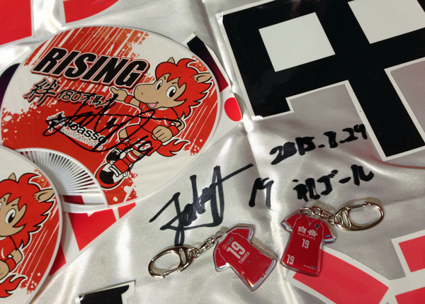 一晩でようやく乾いたゲーフラに翌日のファン感で初ゴールの日付とサインをもらい、次に試合に出るときはきちんと作ったものを掲げる旨ご本人に宣言。