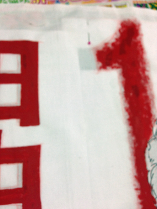 下書きを修正しながらアクリル絵の具を乗せる。今回背番号を大きく描く分文字をボカしてみた。