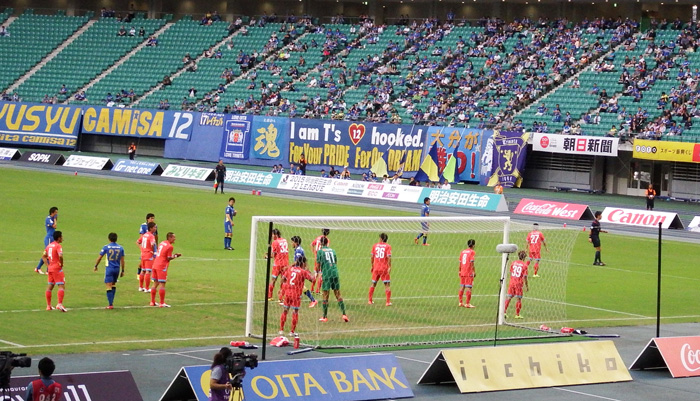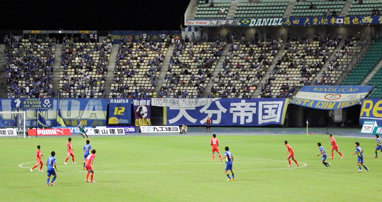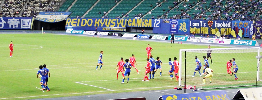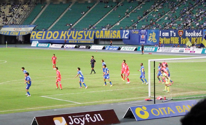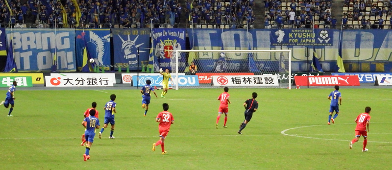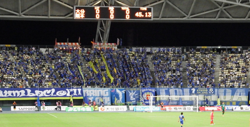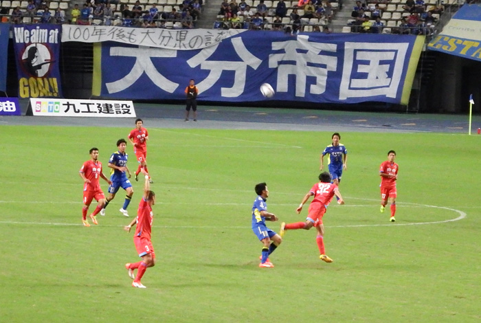 お互いに身体を張るシーンが続くも、どちらかというと大分の気迫が1歩の出だしで勝っていた印象の前半。ダンくんオンステージになってゴール裏では応援の合間にヒヤヒヤ。しかし打たれ強く間際の守備が本当に明確になったとも実感しました。