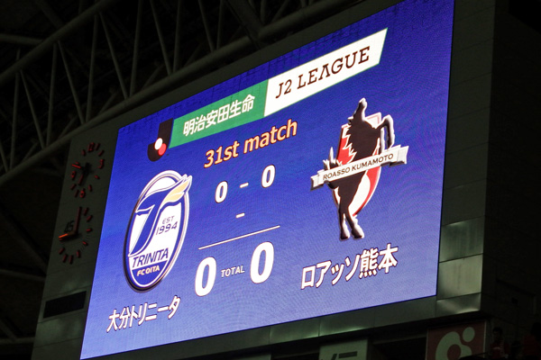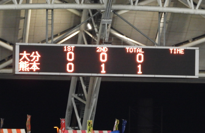 押しながらゴールがない大分。守りながら自分たちのプレーを模索し続ける熊本って感じかな。