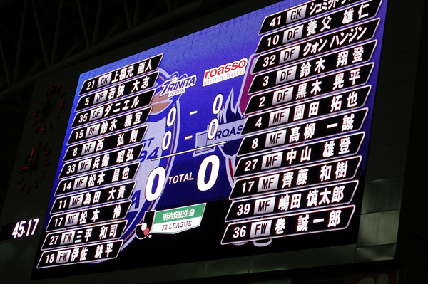 結局スコアレスで前半終了。