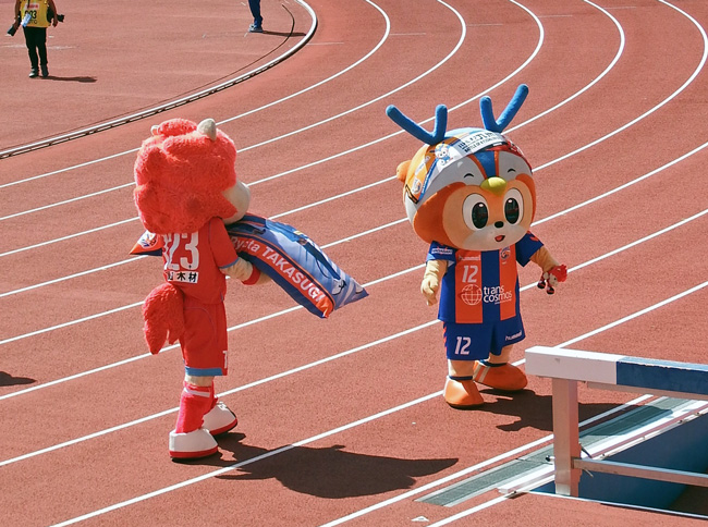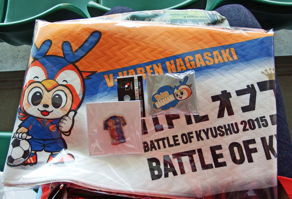 今度はコラボタオル乗っけてチビロアッソくんを持ったヴィヴィくんと、長崎の選手写真がプリントされた長枕を抱えたロアッソくん。