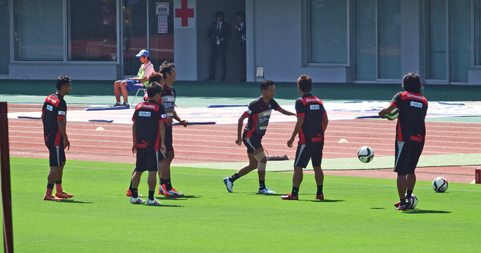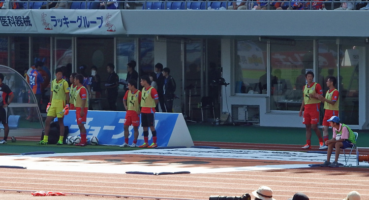 ここはゴール裏の右下あたりがチーム控えの間なので、足元から選手がわらわら湧き上がってくる感じ。