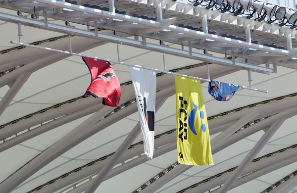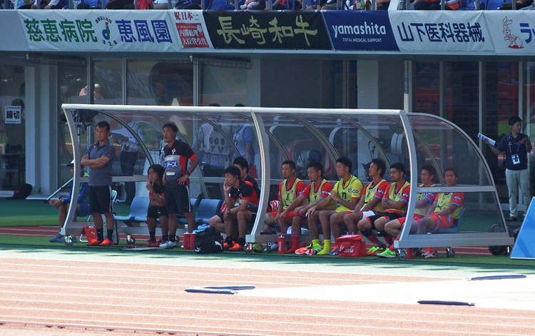 やきもきしつつ天井を見ると強風にまくられた長崎のチームフラッグが丸まって寝ているのを発見。だから何だと言われると困るけれど、これを見て自分の中で何かが動いたんですよ。なんだかよくわからないけど平らだったモノがドウンと波打ったような。