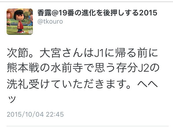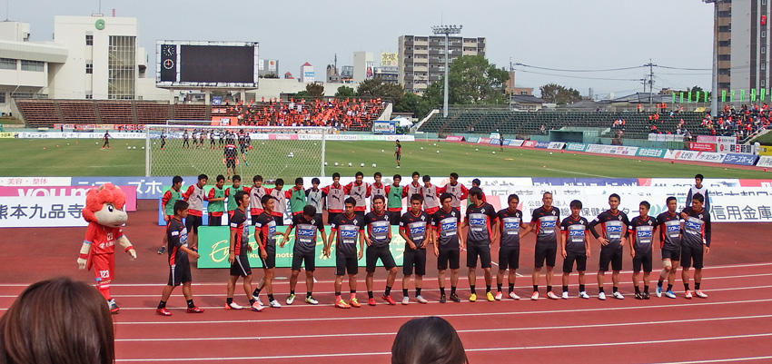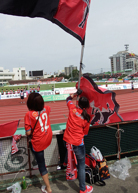 政令指定都市のスタジアムとしては最低レベルの水前寺にJ1復帰目前の大宮からお越しのチームやサポさんに、J2はプロチームでもこんな場所で試合するんだという現実を見てねという、どっちかというと自虐的な意味合いだったんだけど、書き込んだ自分ですらあんな結果までを持ち帰ってもらうことになるとは思ってませんでした(^^;)