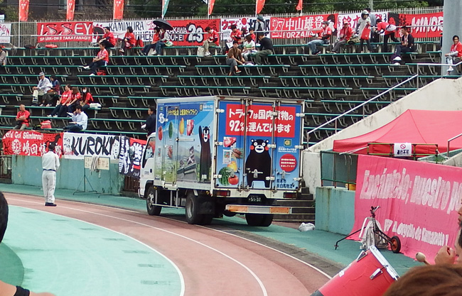ふと見るとトラック。水前寺のフィールドに駐まってると工事が始まるのかと思ってしまう(笑)