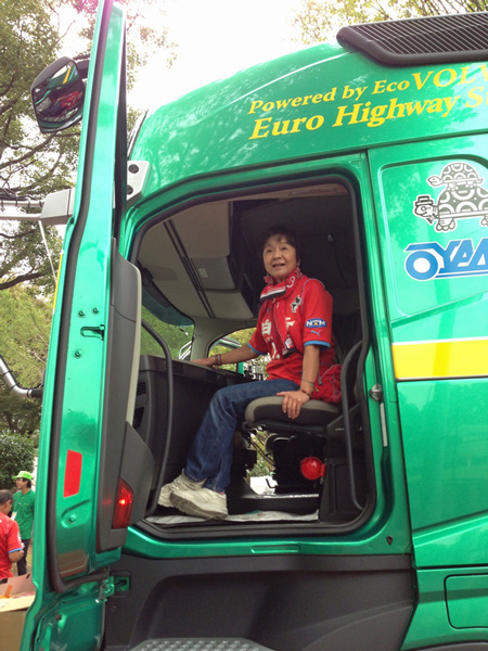 トラックの日(どういう語呂合わせか不明)ということで試乗会。運転させてもらえるかと期待したけどそもそもそれは無理。免許ない。