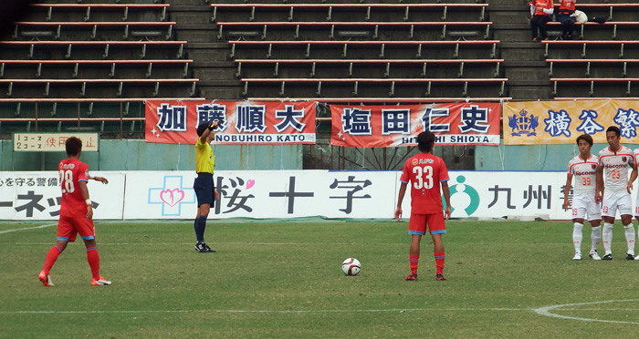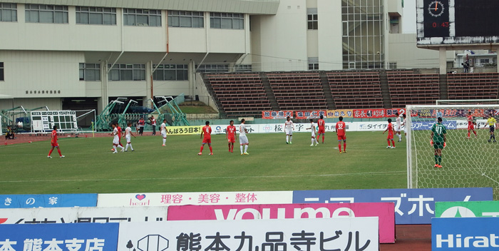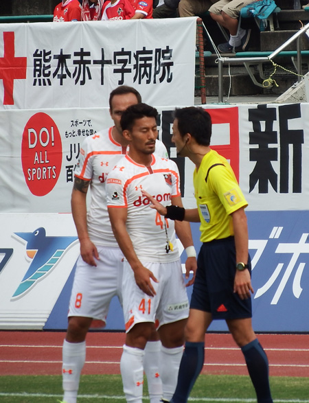 まだ爪隠してるのかね?という印象の20分。どっちかというと熊本の方がマイペースを維持できていて大宮のボールの出どころをサクッと押さえて攻撃に転じているように見えていました。
