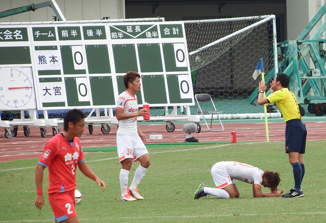 誰かがそう言ったわけじゃないにしても、まだ自分たちのエンジンの暖まるのを待ってるような大宮のプレーを、ようやく熊本側の視点で見ることができるようになってきた時間帯でもあり。