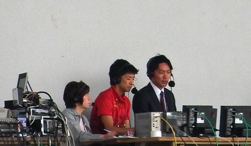 実況席が丸見えなのも水前寺ならでは。高校サッカーみたい。解説は往年のロアッソ背番号7。リーグ戦で見たのは数えるほどだったけどサポーターに愛された選手でした。ケガしてもケガしてもみんな復活を待ってたよね。