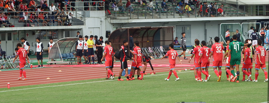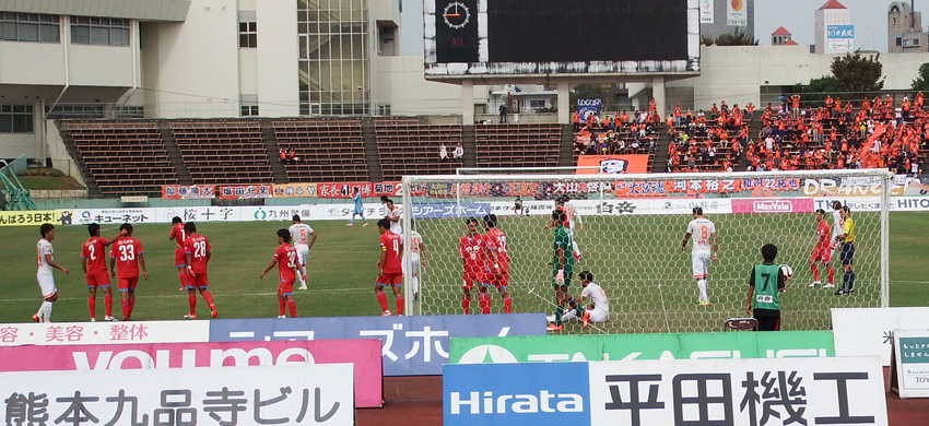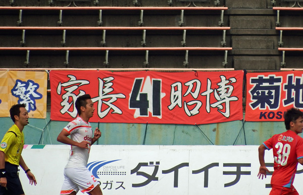 しかし、得点掲示板とゴール決めた選手がこれほど近くでツーショットになるってのは水前寺ならでは。