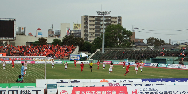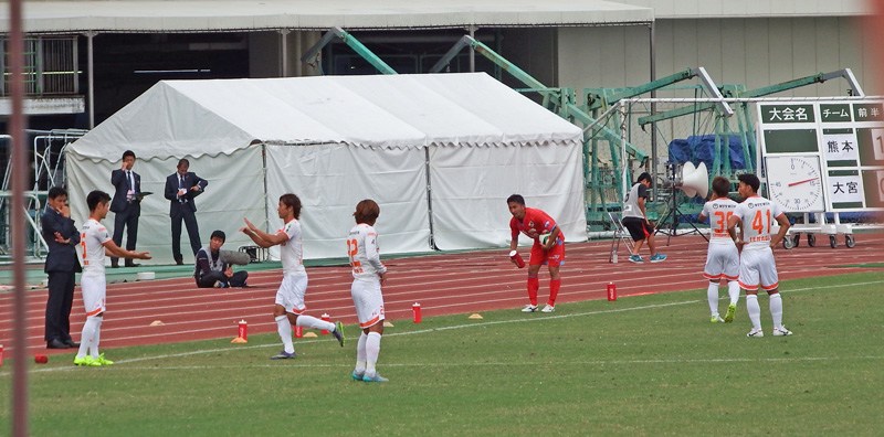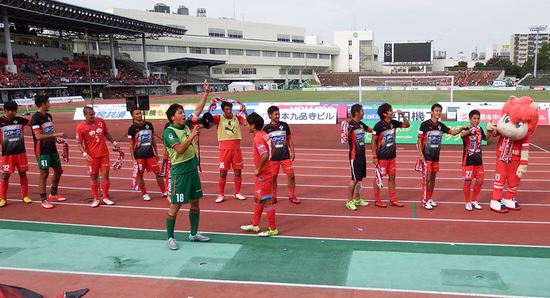 折しも水前寺競技場の隣の野球場では2チームが並んで表彰式が行われていました。どちらが優勝チームかわからないけどこうして名前を呼ばれる場所に、いずれロアッソも立ってほしいものだと思いました。