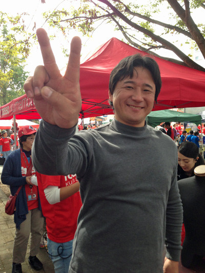 勝利の余韻はいつまでも続き、こういう日はゴール裏を離れがたくてあちこちでサポの皆さんとおしゃべりして、なかなか帰らない。チャリで10分もかからない距離ってのもあってまだ水前寺の空気の中にいたいと思うんです。