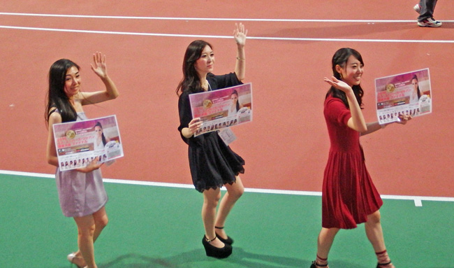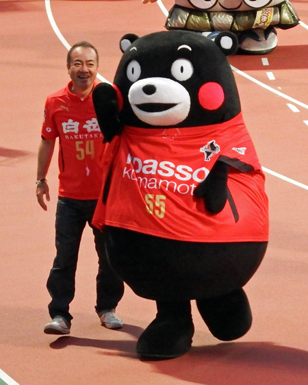 今日の試合は熊本市民デーだそうで、市長から熊本城おもてなし武将隊からミスユニバースの皆さんからタレントさんから女子マネまで、熊本市で集まるだけの有名人が集っていました。