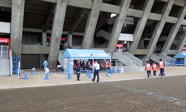 スタジアム改修箇所があって今回は真ん中からの入場になってます。ピカスタではホームサポとアウェーサポの入場口があまり離れてません。