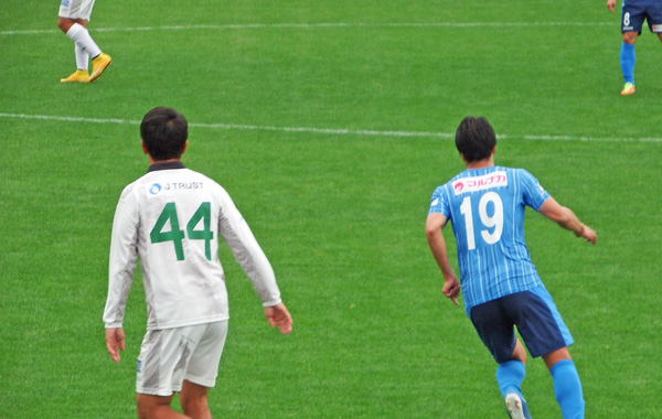 マッチアップしてたのは隼斗くん。この二人、目の前で削ったりぶつかったりの足捌きですごく楽しませてくれた。しかも讃岐の19番全然負けなかった。ヒャッホウ!
