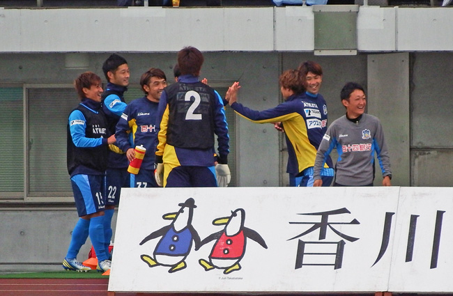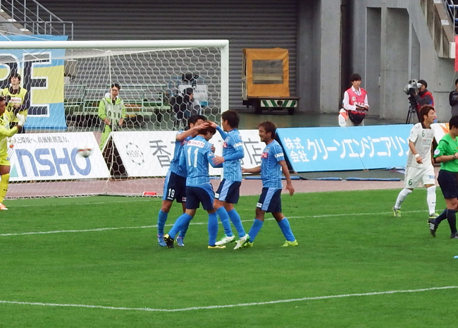 慌てず騒がずきっちり決めて、3-0。今日の讃岐は何をやっても上手くいく感じ。