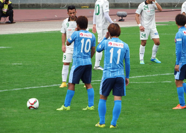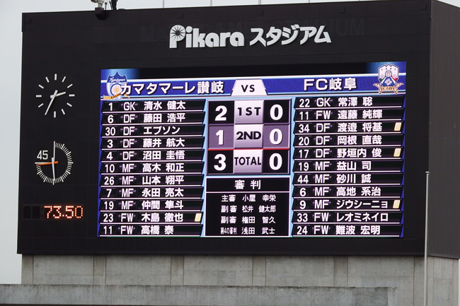 岐阜は思うようにボールを回せなくて、被ファールアピールも功を奏さず、讃岐の連動した早い攻撃を止めることができませんでした。