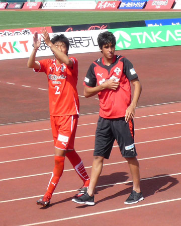 片や日本サッカーにあこがれて短期間ながらチームにフィットしてのJリーグ初スタメンで堂々の初ゴール。片や通訳もない環境でのJリーグ2年目にしてヒーローインタビューに答えられるレベルの日本語をものにしてのゴール自陣前の壁っぷり。