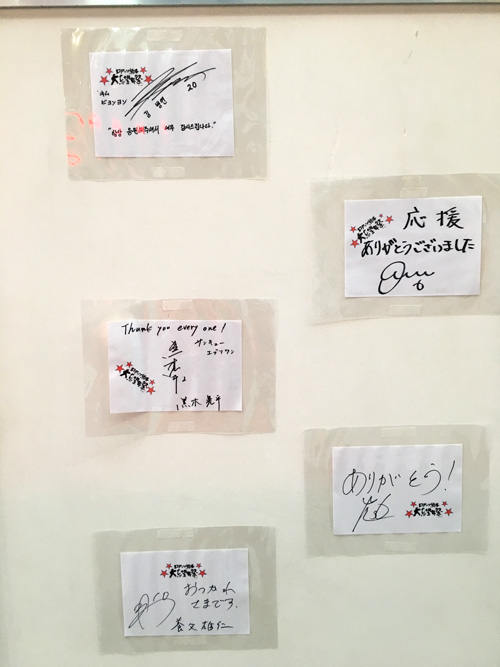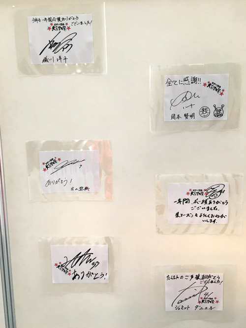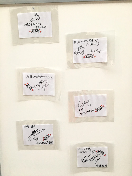 選手からのメッセージカード。展示物で写真撮れたのは貼り付けのお手伝いをしたこれだけ。