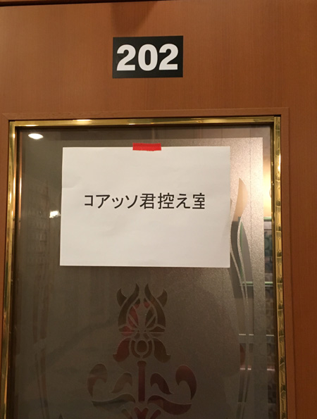 スタッフ&お手伝いの控え室の近くには「コアッソくん」という方が控えていたようです。誰なんだ君は(笑)