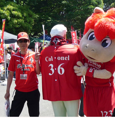 試合前に味方ゴール裏に挨拶に行ったオーレくん。
