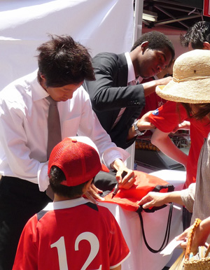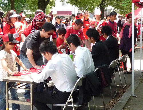 試合ではまだ見ぬ彼らですが、赤馬衆ファンはそんなこと気にしません。ピッチで活躍するようになったらサインもお預けになるんだから、今の内にもらっとかなきゃねー!(^^)/