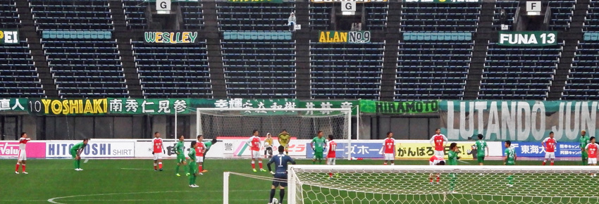 讃岐戦では交代出場してゴール決めた平本選手がここでも交代出場。熊本ではゴールはならなかったけれど、400試合出場おめでとうございます。400試合って本当にすごい記録ですよね。