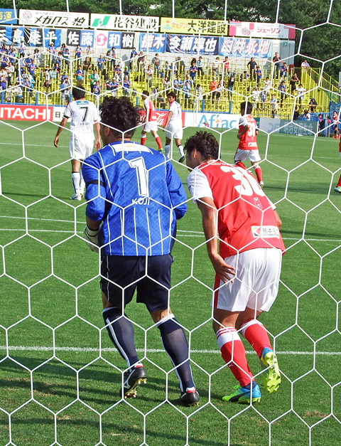 後半の金沢ゴールも向こう側。1点くらいこちらに決めてほしかったなあとカモンロッソ♪