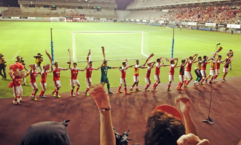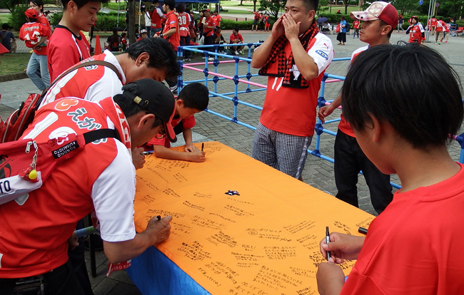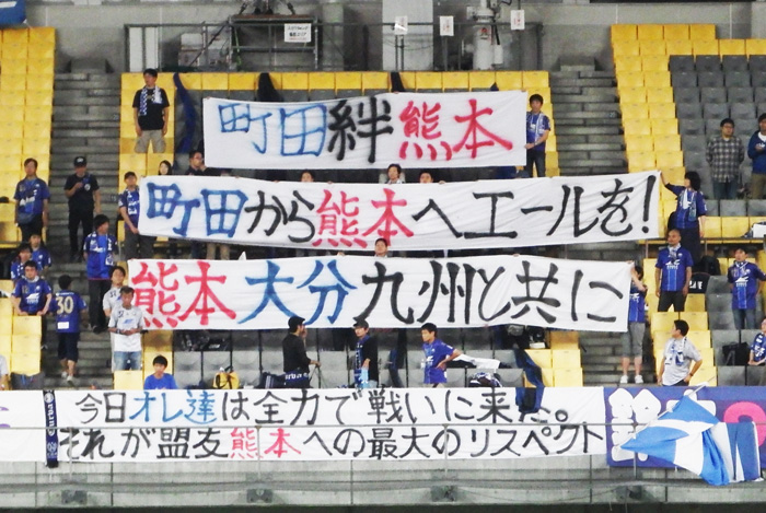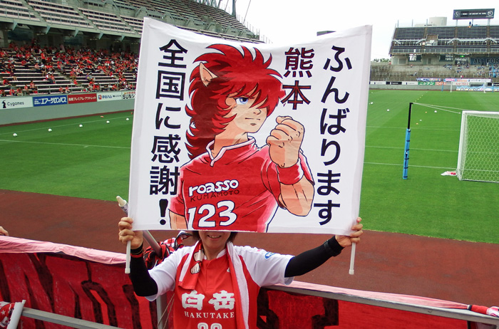 この間、他クラブのスタジアムを借りてのホームゲーム・日程通りのアウェー戦・震災による変則開催のリーグ戦と多くの試合を戦ってきたロアッソ熊本を、魂こめて後押ししてきた。