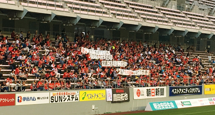 サガン鳥栖のJ1昇格で熊本ゴール裏で掲げた横断幕を、鳥栖の方々は今でも覚えていて下さった。本当に嬉しい。