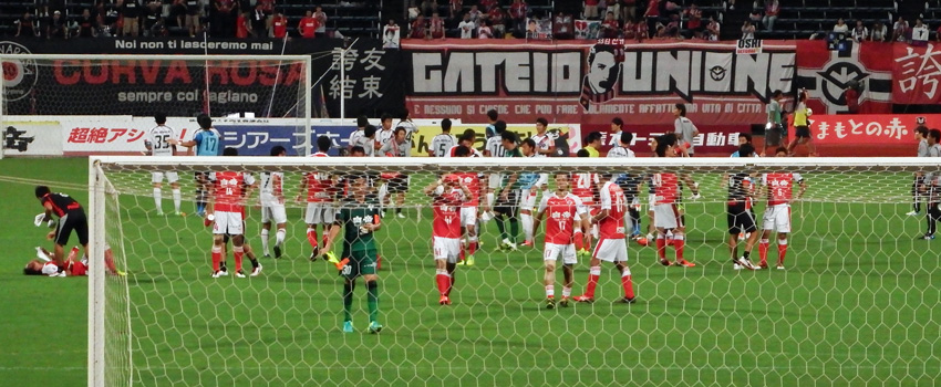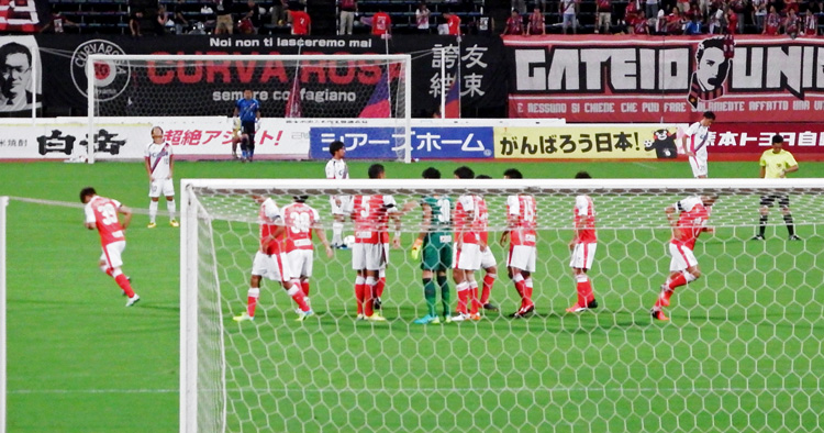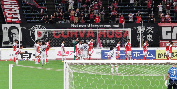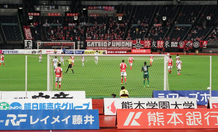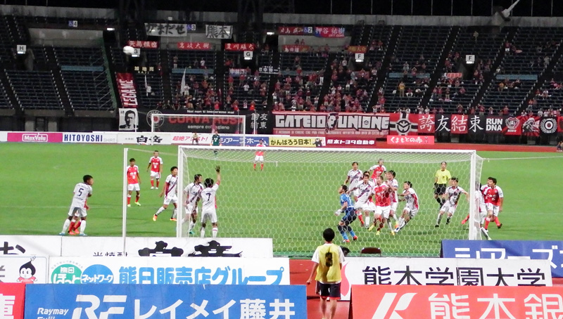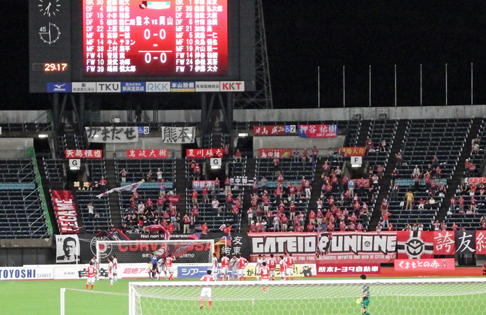 その後も危機一髪シーンの連続で、反対側の熊本ゴール裏はプチ阿鼻叫喚。連続CKとか心臓に悪すぎ(>_<)