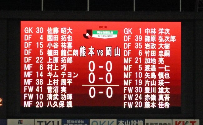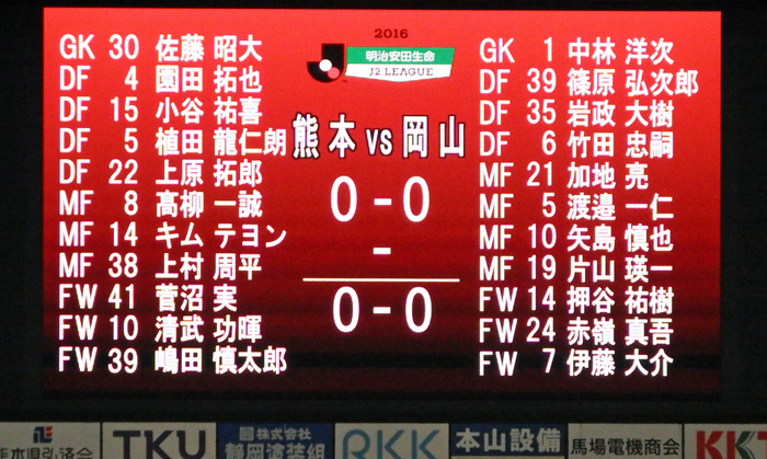 スタメン。岡山さんのスタメンがいよいよJ1ぽい。