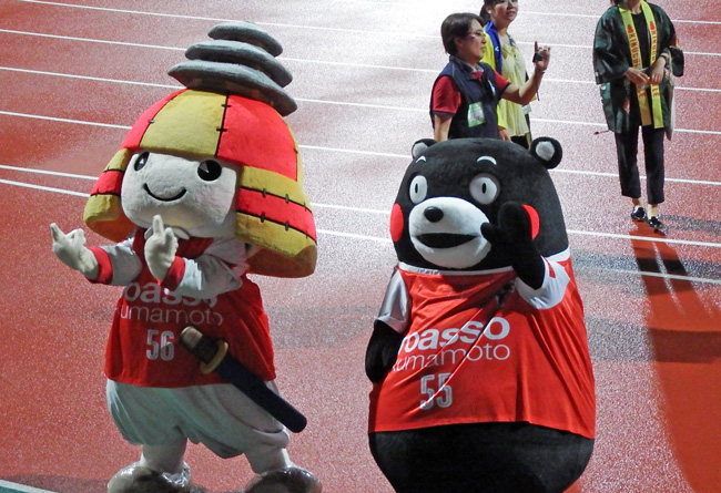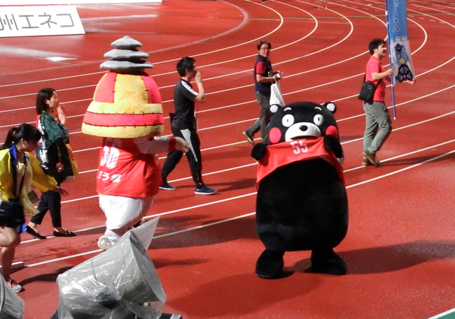 今夜はHTのスポンサー大名行列がなくていつものゆるキャラ衆がフリーダムにウロチョロ。もうちょい試合に余裕ができればもっと楽しいんだろうな彼らとのやり取りも。