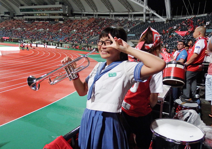 HT明けにスタジアムに響き渡るコーヒールンバのトランペットは彼女。もうすっかり滑らかな演奏っぷり(^^)