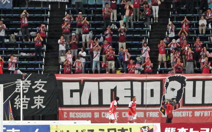 実は、私も現地に居りました。17日にベアスタで観戦し18日には熊本入りしました。カマタマサポの方のブログを読んでスタッフのお手伝いをさせていただきました。14時前から、テントの設営、17時からは4ゲートでチケットの確認と受け取りをハーフタイム頃までやっていました。慣れていないため、かなりくたびれましたが良い経験をさせていただきました。