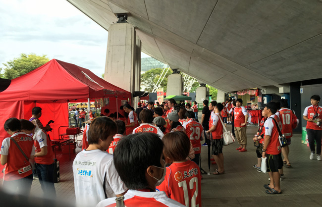 入場前に出没してスタグル広場でサポさんと絡むのが試合日の日課。