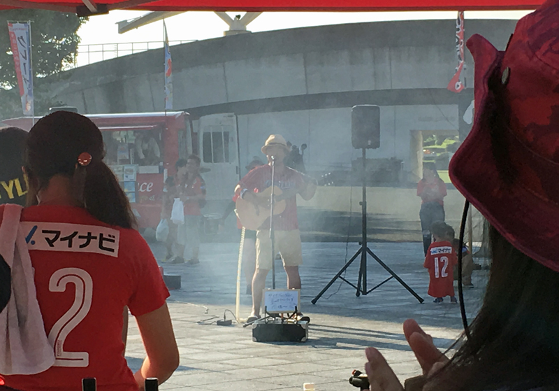ロアッソの大スターがスモークの向こうで歌うスタグル広場