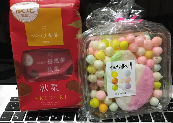 自分土産で母恵夢を買うのは季節の風物詩。個人的には秋の栗バージョンが一番好きかな。おいりは毎回の定番です。大好き♪