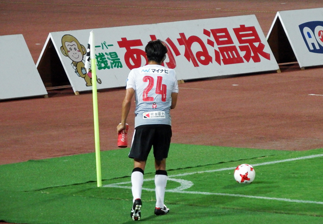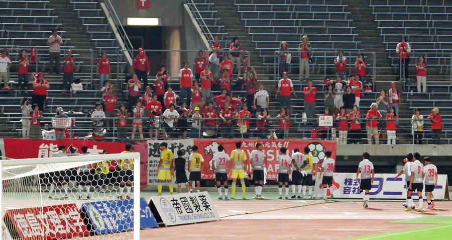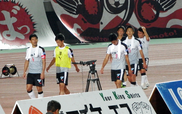 自分はサッカーを見ていて、端的にゴール前の攻防という点で攻撃側のプレーの「惜しい」と「残念」は紙一重と解釈してます。讃岐は攻めの姿勢になるとFP全員が攻めるも守るも攻撃の態勢でガンガンくる感じが90分間通して伝わってきて、結果的にゴールに繋がらなかった「惜しい感」に対して、熊本はボールを持った瞬間の攻守切り替えをFP総出で意識共有しているときと出来ないときの落差がかなりあったということです。できてないわけじゃないけど「サポーターが後押ししながら乗っていける攻撃」が時間を経るに従って数えるほどになってしまう「残念感」。