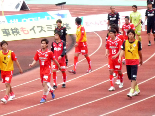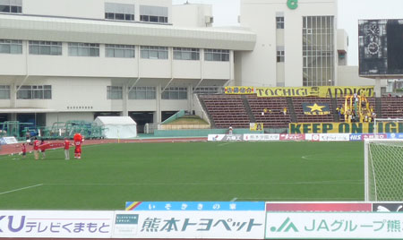 水前寺と栃木サポさんてのも見慣れた風景だなと思ったら、栃木SCとはまだ一度もKKWINGで対戦してなかったのねー!!。ある意味貴重なお相手です。うーんせっかくの記録更新だから水前寺で負けたくなかったんだけどー(^^;)。