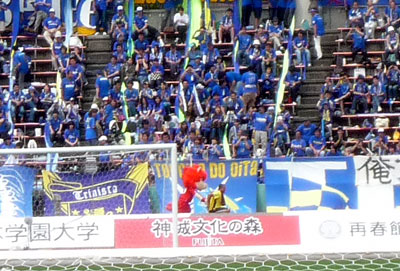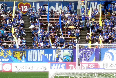 こんな初歩的マスコット競演を、海千山千の大分サポさんがどう評価するかはわかりませんが、相手チームマスコット大好きなロアッソサポーター軍団はものすごく喜んでおりました。