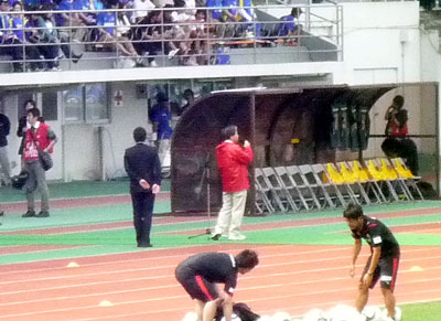 トリニータ組のグダグダっぷりに余裕をカマして途中でストレッチ。