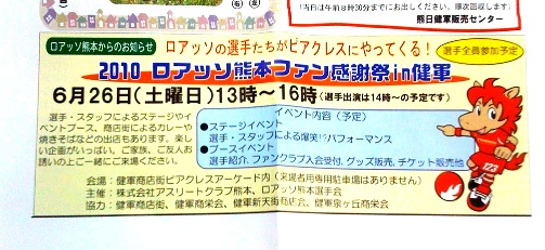 これまでも、商店街や市内の団体のイベントにゲストで出演したことは度々ありましたけど「ロアッソ熊本」主導のオリジナルイベントってまだなかったのでは。(私が参加してないイベントもありますのでアバウトですが)
