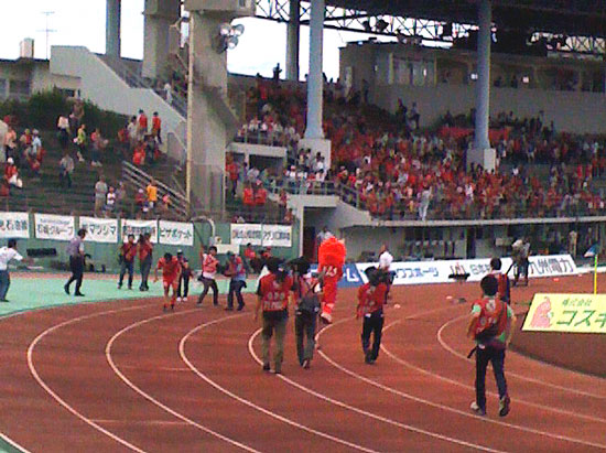 ロアッソサポとしては申し訳ない気がしますが、個人的にシマダ選手大好きで、敵ながらも彼の流麗なフリーキックのゴールを目の前で見ることができたのはものすごく嬉しかったんでございます。
